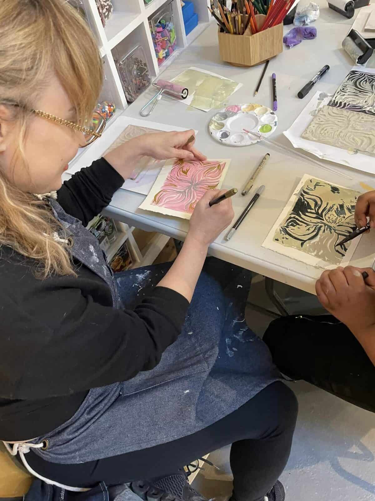 Visibility Artists lead community art classes and workshops for schools, organizations and corporations. Sessions inspire creativity and connection for participants of all skill levels and ages. Past workshops include Print n’ Sip classes, self-care grounding techniques and art journals and hands-on paper landscape creations.